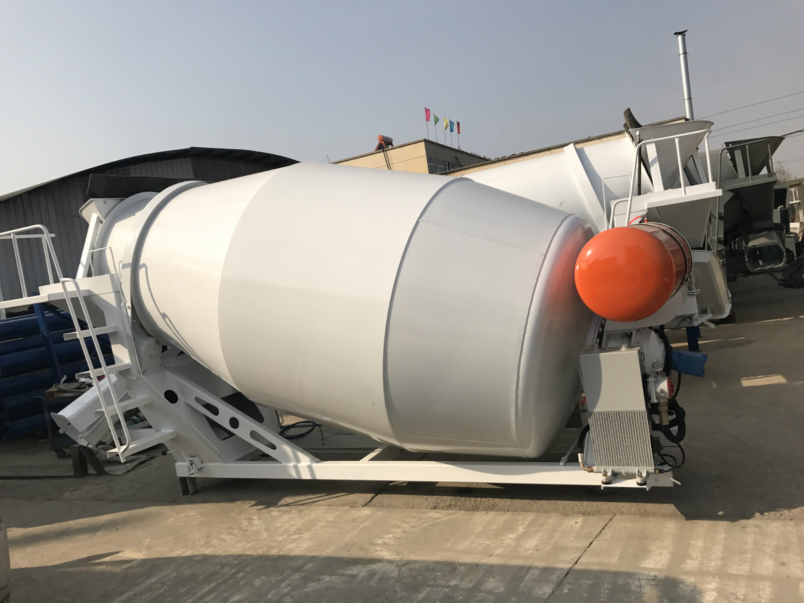 混凝土搅拌运输车由汽车底盘和混凝土搅拌运输专用装置组成。